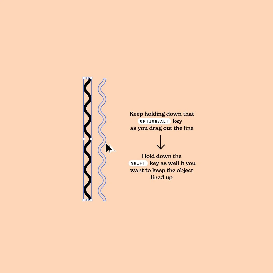 Step four: Now that you have your lines spaced apart correctly, simply hold down command-D (or ctrl-D) and press this as many times as you want to duplicate your wavy line. And that’s it!